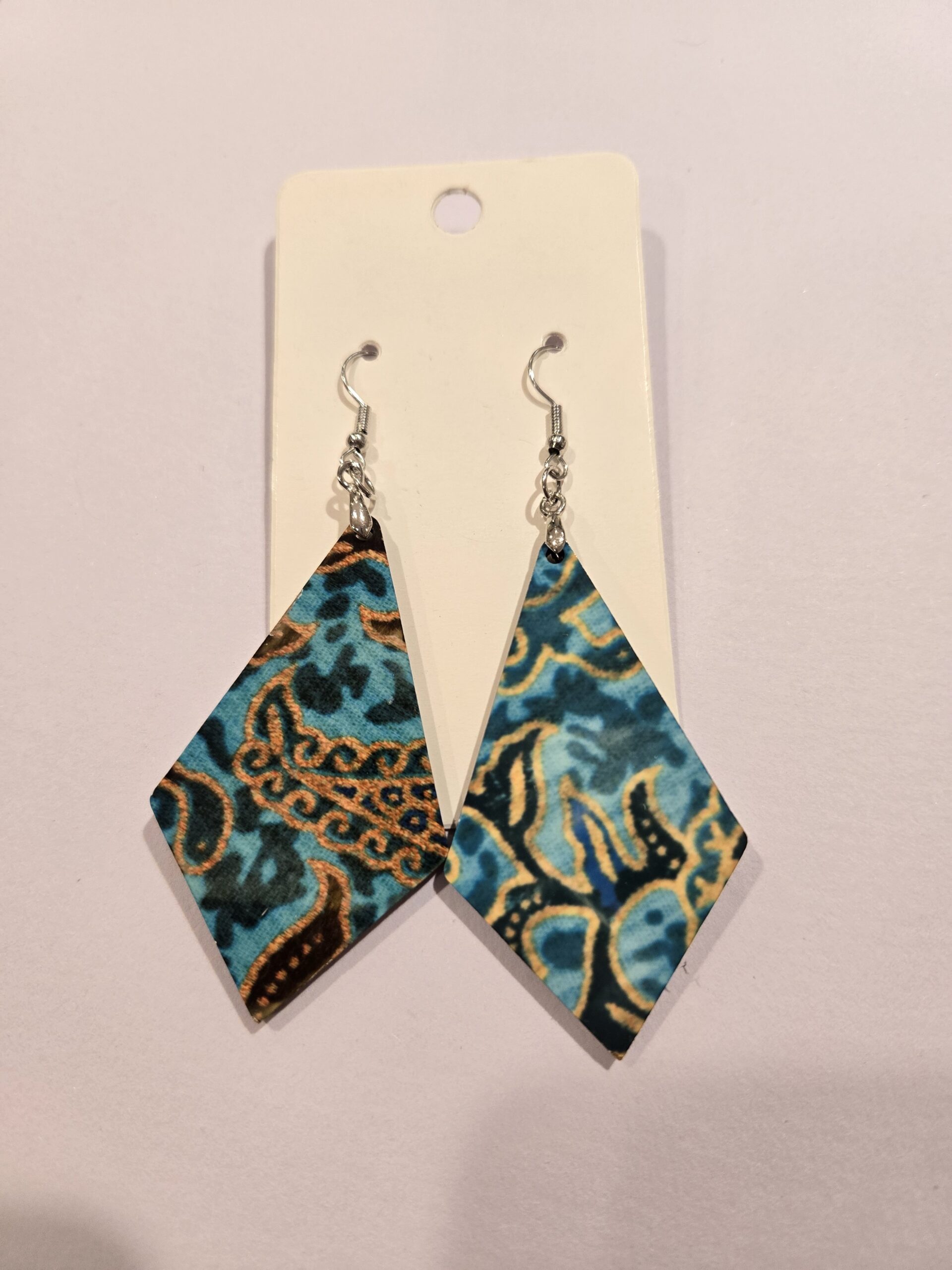 Fun and funky wood a sublimination earrings by Changing Coasts Designs. Created by a submarine family owned business.