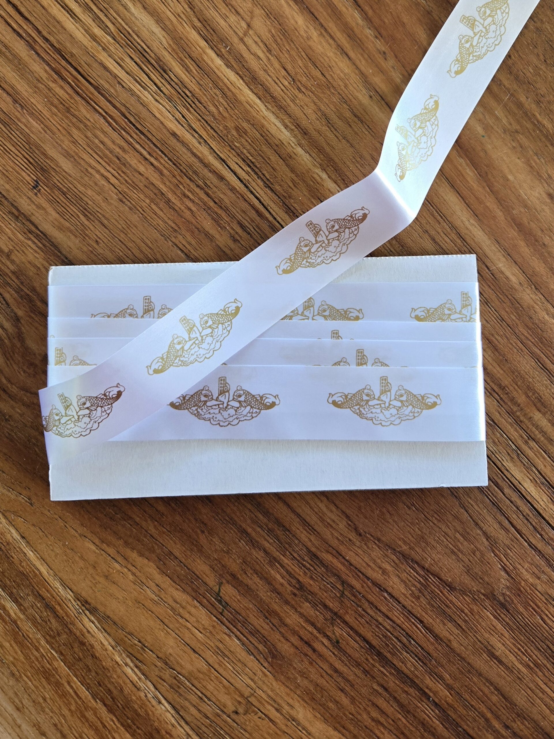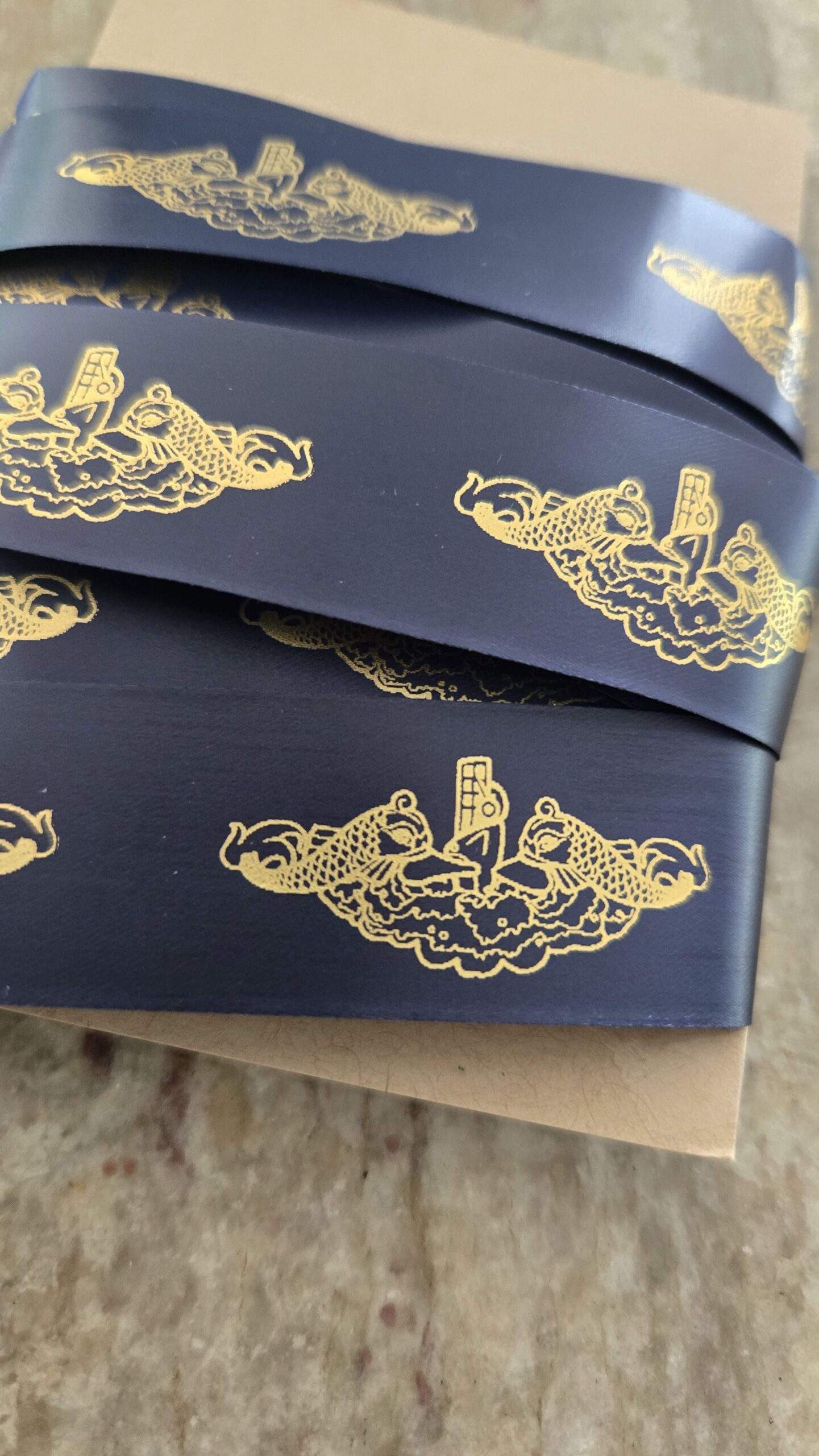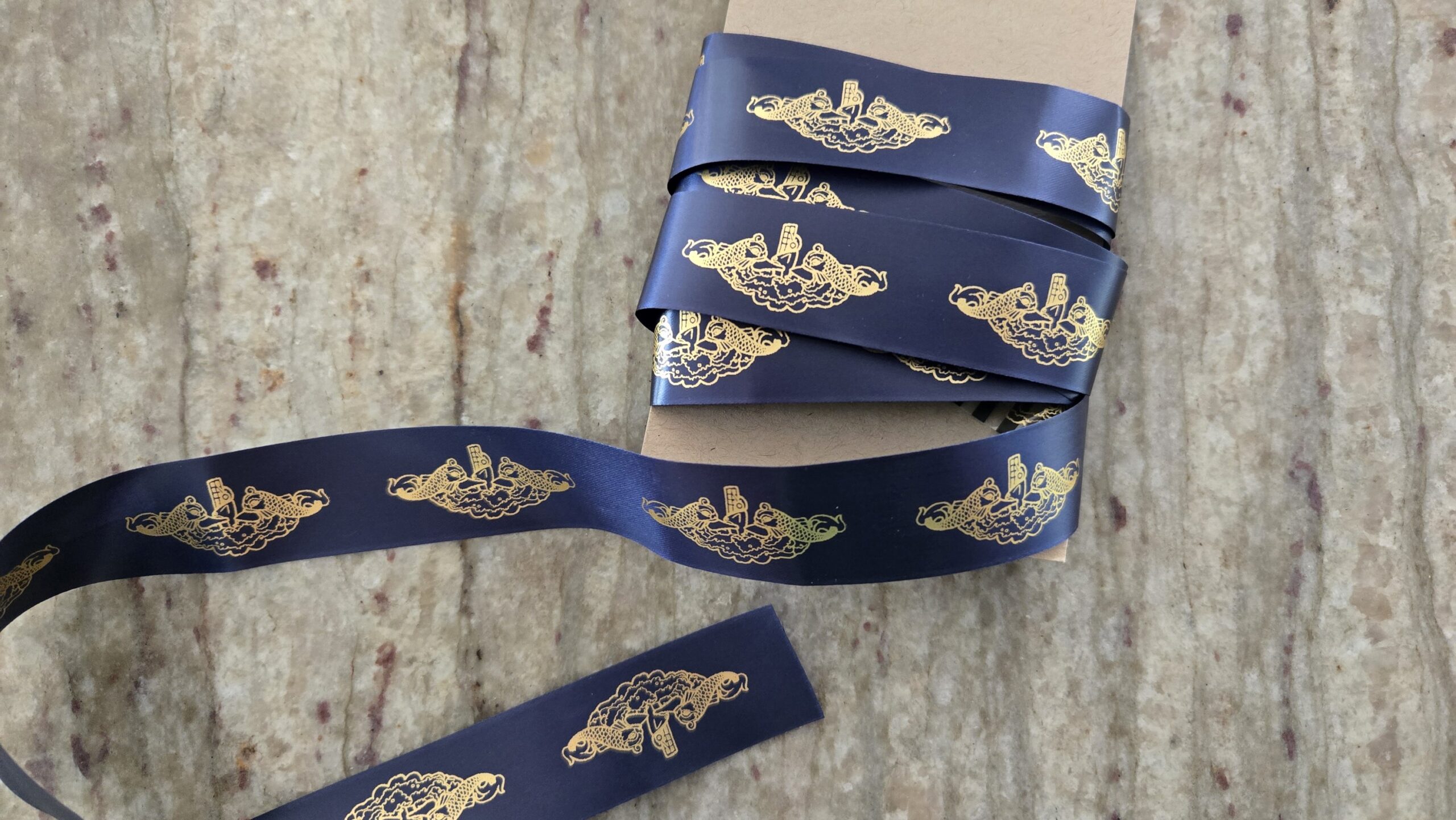 Wrap your special gifts in this beautiful hand printed ribbon. Made on island by a submarine spouse.