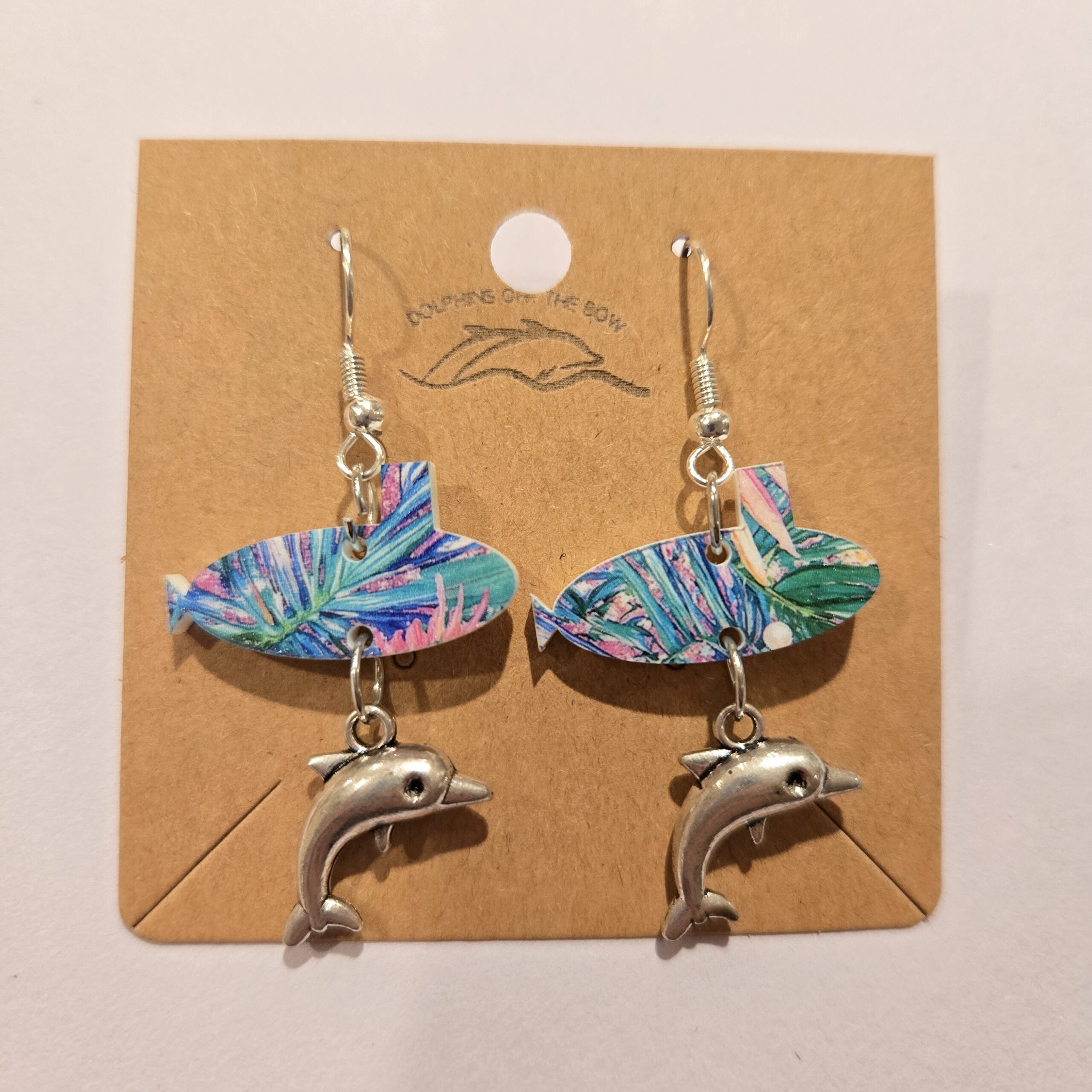 Dolphins Off the Bow Submarine Dangle Earrings