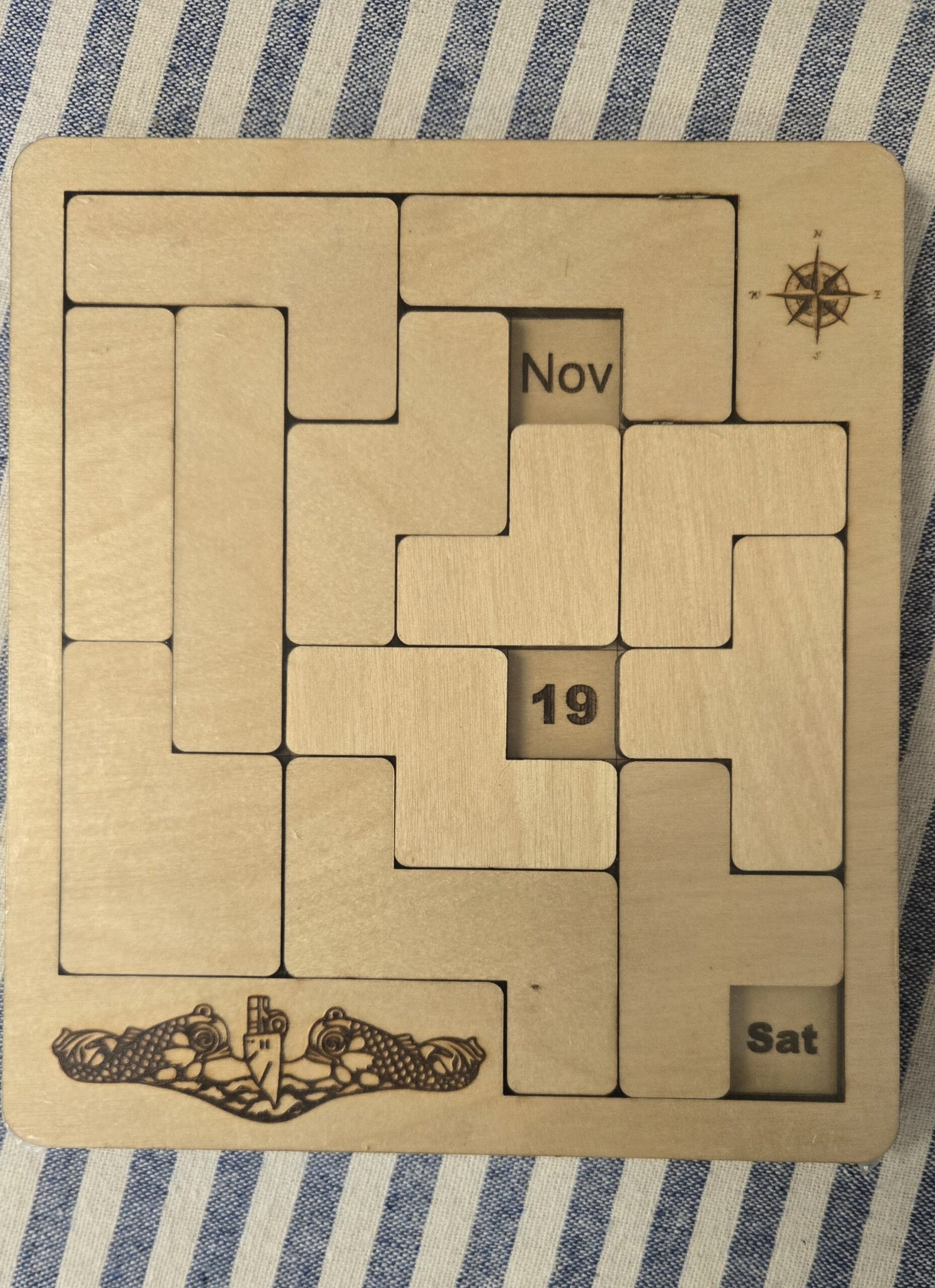 Awaken your brain each day with this wooden calendar puzzle! Rearrange the pieces each day to reflect the current date. A fun way to challenge yourself each morning and a great addition to your home or office space.